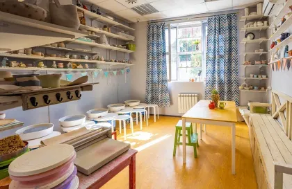 Студия керамики в центре Москвы с мастер-классами по лепке и гончарному кругу, творческими программами и уютной атмосферой вдохновения.