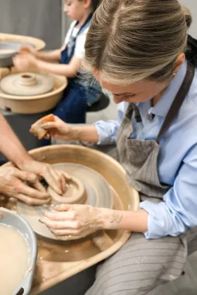 Гончарная студия в Москве, где можно лепить на круге, участвовать в мастер-классах, прийти с детьми или отметить праздник в творческой атмосфере.