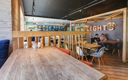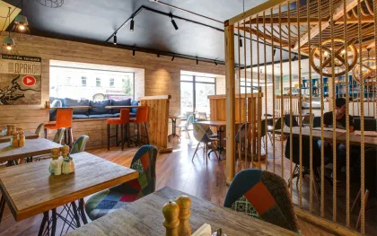 Современный ресторан-бистро с блюдами для ЗОЖ, завтраками, десертами без сахара и атмосферой для общения и отдыха.