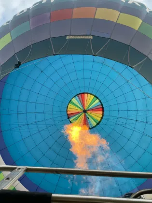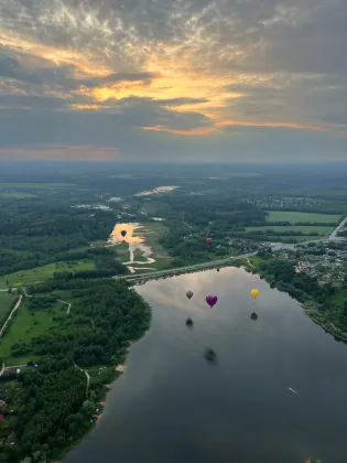Клуб воздухоплавания Touch the Sky в Дмитровском районе Московской области предлагает полёты на воздушном шаре: трансфер, инструктаж, шампанское, фотосессия и час в воздухе при хорошей погоде.