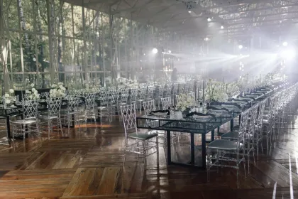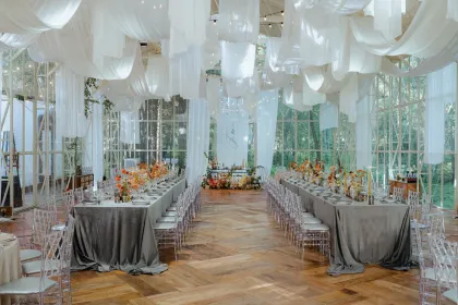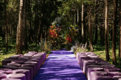 Площадка для мероприятий в Подмосковье: зал и открытые пространства на фоне леса, рассчитанные на 30–10 000 гостей.