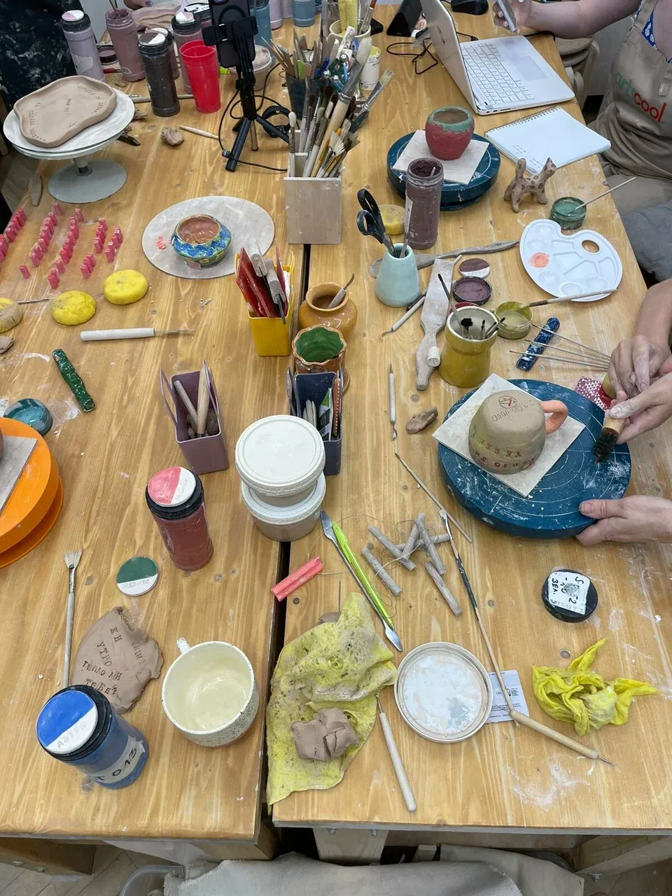 Подход дружелюбный: дети с 4-5 лет могут попробовать лепку, подросткам и взрослым доступны занятия на круге. Обучение адаптируется под разные уровни — от первичных навыков до самостоятельной работы.