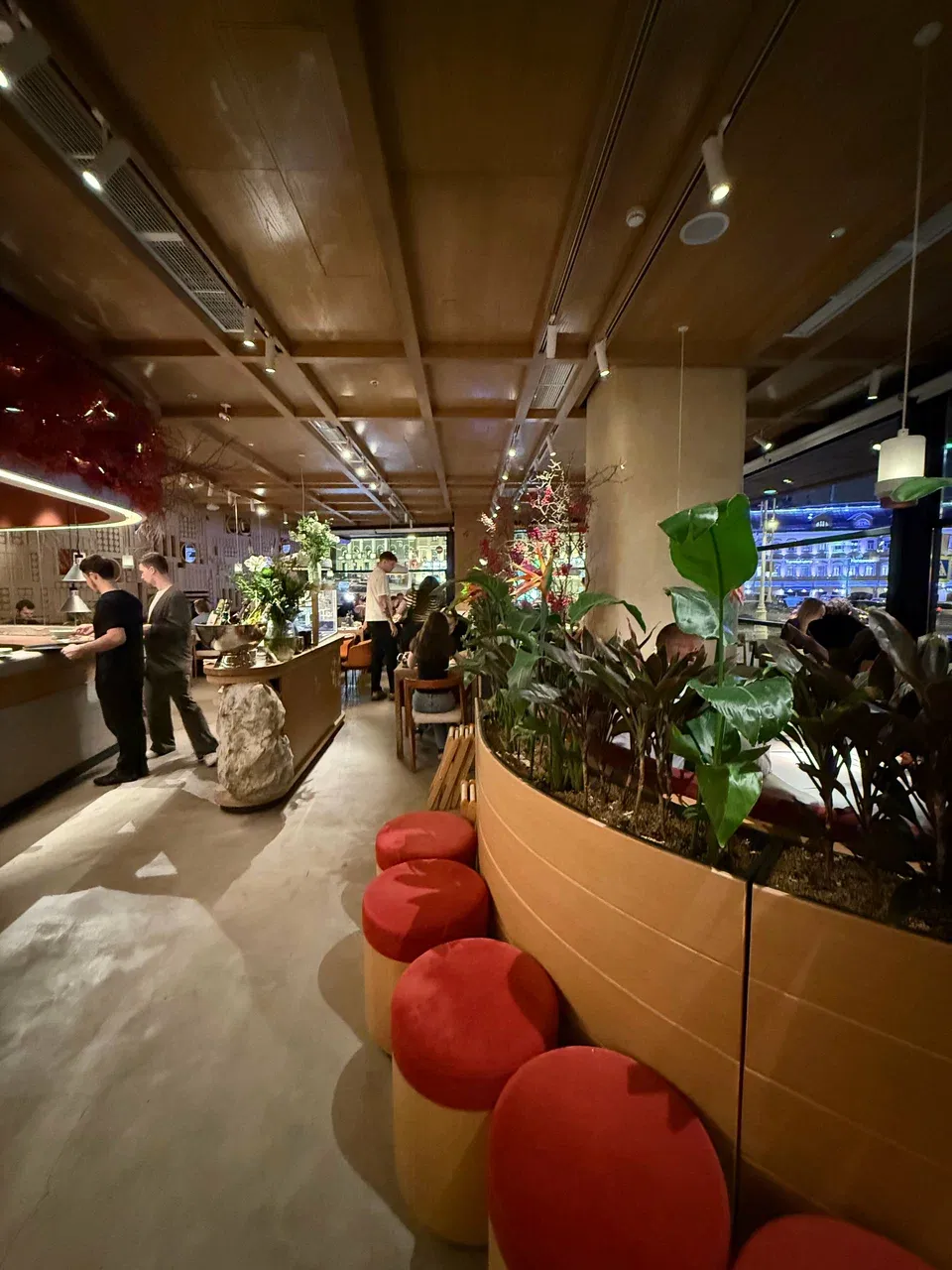 Интерьер AVA выдержан в минимализме с продуманными акцентами: натуральные материалы, светлый камень и дерево, комфортные диваны и столы, барная зона и открытая кухня — всё создаёт гибкий формат: можно спокойно поужинать вдвоём, можно встретиться с друзьями или устроить небольшое событие. В залах нет излишнего официоза — ощущение расслабленной элегантности.
