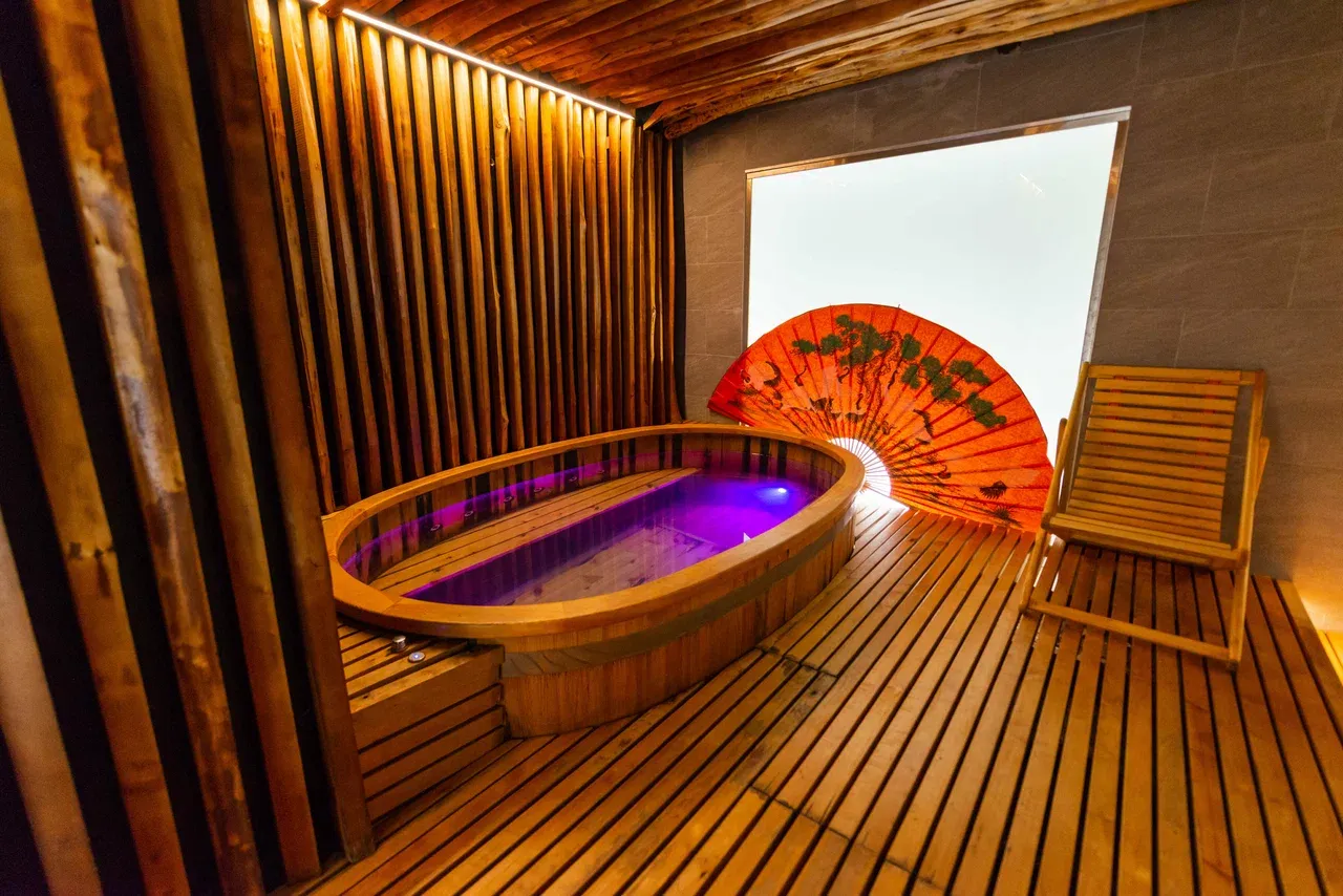 Комплекс предлагает несколько форматов: классическая русская парная, купели с гидромассажем, контрастные процедуры с льдом и воздействием холода, ароматические ритуалы и аромапарения, удобно интегрированные в банную программу. Есть возможность арендовать зону для компании, провести вечер с друзьями или устроить приватный визит. После парения и водных процедур гости переходят в лаунж-зону: шезлонги с мягкой подсветкой, травяной чай без ограничений и лёгкие угощения создают мягкое завершение и ощущение лёгкости.