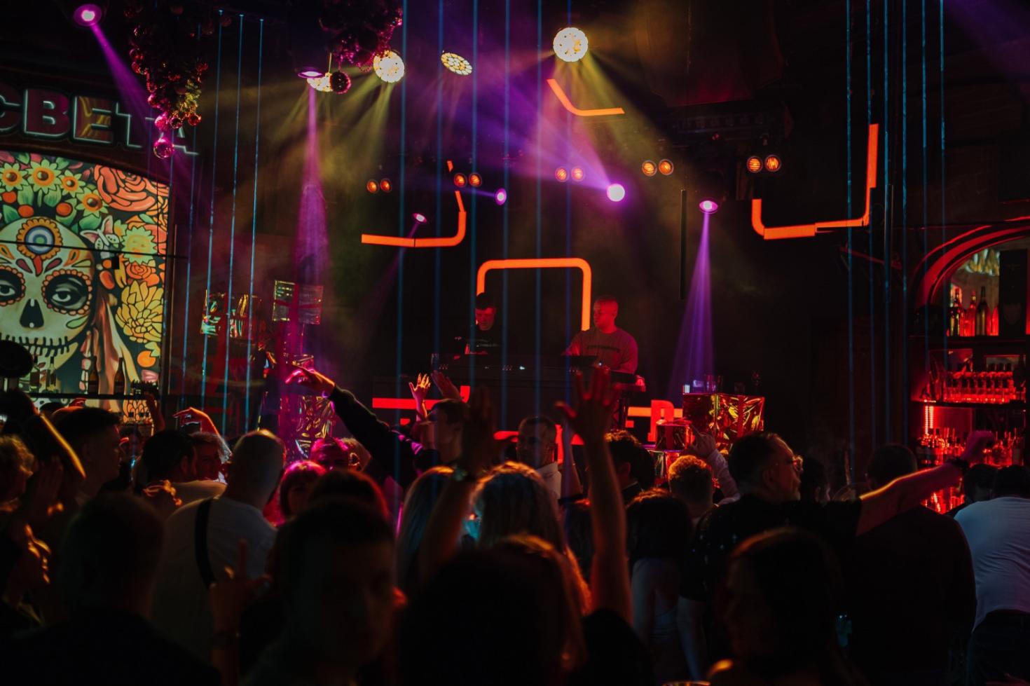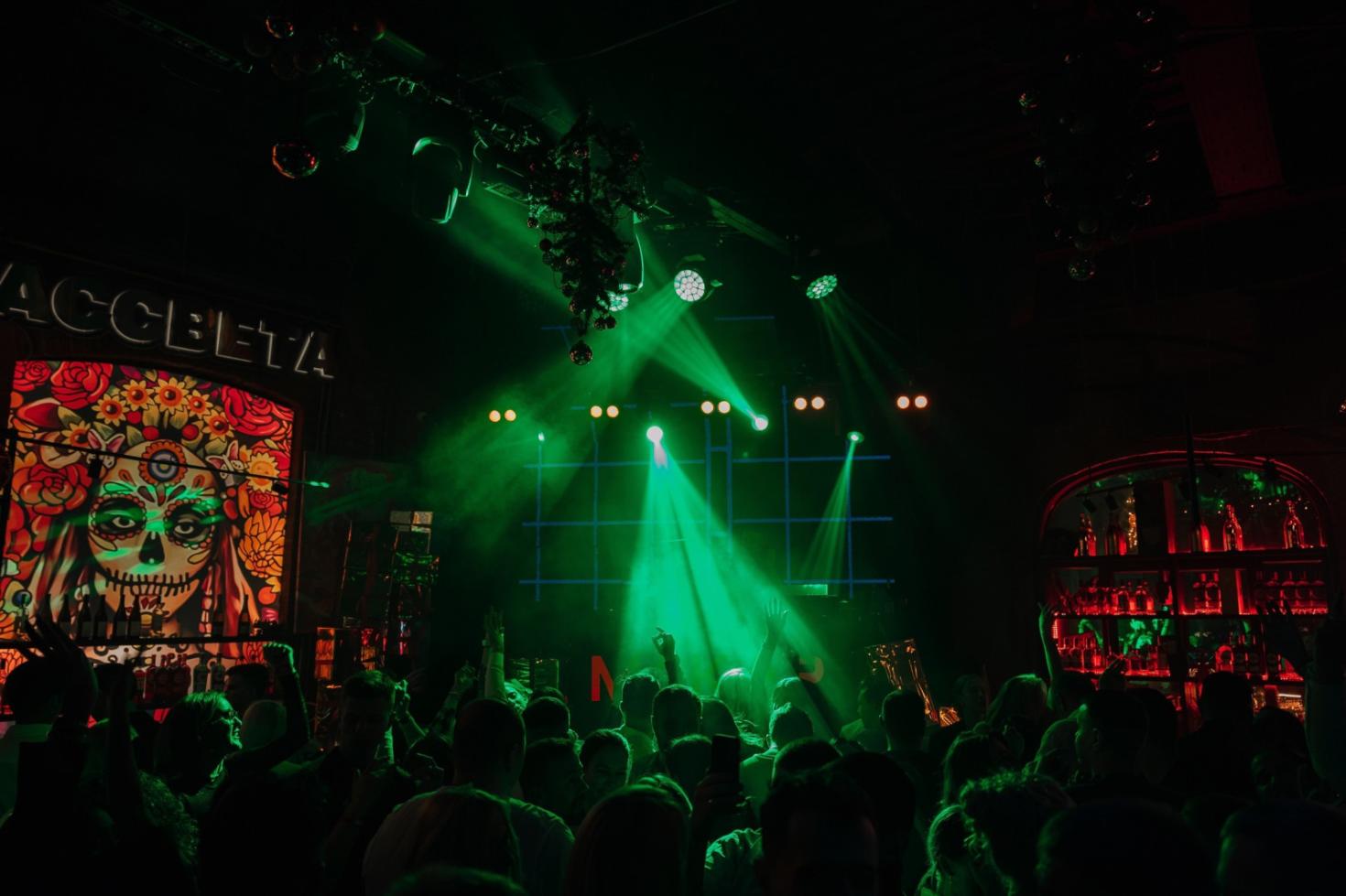С самого входа ощущаешь масштаб пространства: разветвлённые коридоры ведут к разным зонам, где каждый уголок предлагает своё настроение — от уютных лаунжей до активных танцевальных площадок. По вечерам здесь оживают DJ-сеты, живые выступления и тематические вечеринки, фактически превращая пространство в клубный центр города.
