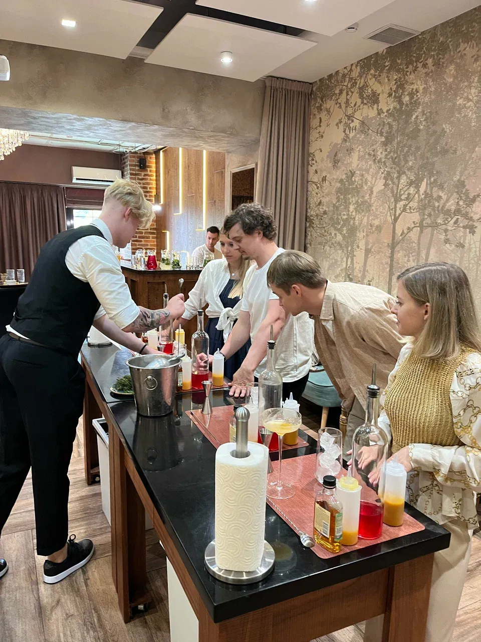 В пространстве на улице 1905 года откроется событие, где можно не просто попробовать коктейли, а погрузиться в процесс их создания под руководством профессионального бармена. Начало начинается с короткой теоретической части: рассказ о базовых ликёрах, миксах и пропорциях, затем — работа с ингредиентами, где каждый участник получает комплект для приготовления трёх авторских напитков. На практике присутствует возможность настроить крепость, пропорции и подачу — узнать, как сделать классический Spritz или Daquiri по-своему, опробовать тропический Mule и другие форматы. В течение занятия можно не только готовить, но и обсуждать, пробовать варианты и сразу же дегустировать результаты, оценивать и корректировать.