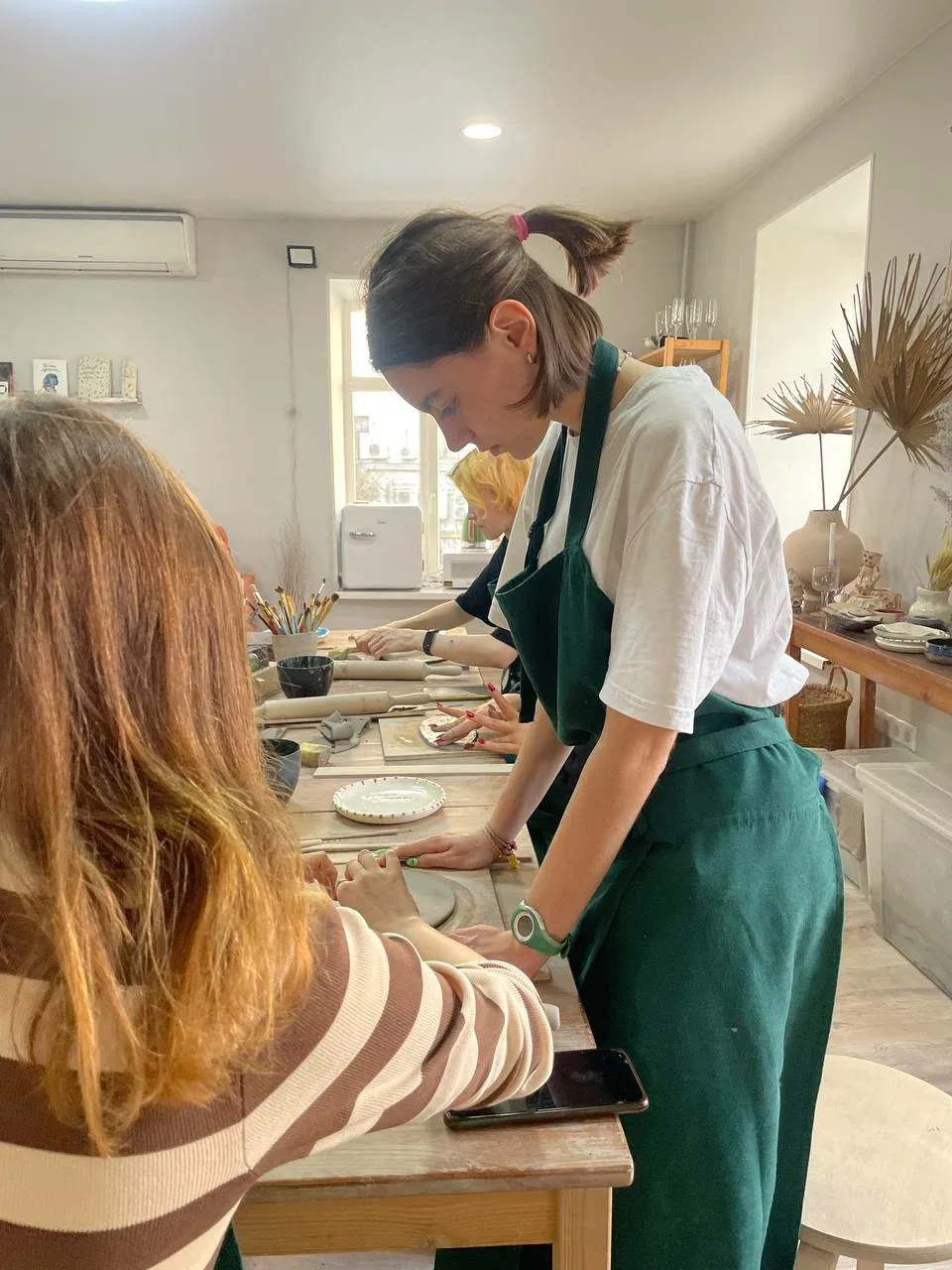 Занятие начинается с знакомства с материалом — глиной, инструментами, основами техники. Участникам показывают, как формовать изделие: чашку, миску или вазу, дают вводные по работе на круге или формированию вручную. Затем мастер помогает с декорированием — выбираете текстуру, орнамент или глазурь, задаёте свой стиль. В течение занятия атмосфера напоминает дружелюбное творческое сообщество: небольшие группы, внимательные мастера, рабочая обстановка без суеты, рассчитанная на концентрацию и удовольствие от процесса.