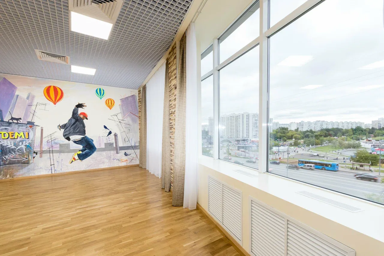 Интерьер школы продуман до мелочей: просторные залы с зеркалами во всю стену, профессиональные покрытия, хорошее освещение и акустика. Есть зоны отдыха и возможность арендовать студию для репетиций, съёмок или частных занятий. Студия открыта ежедневно, а занятия проходят с утра до вечера — удобно для тех, кто совмещает танцы с работой или учёбой.