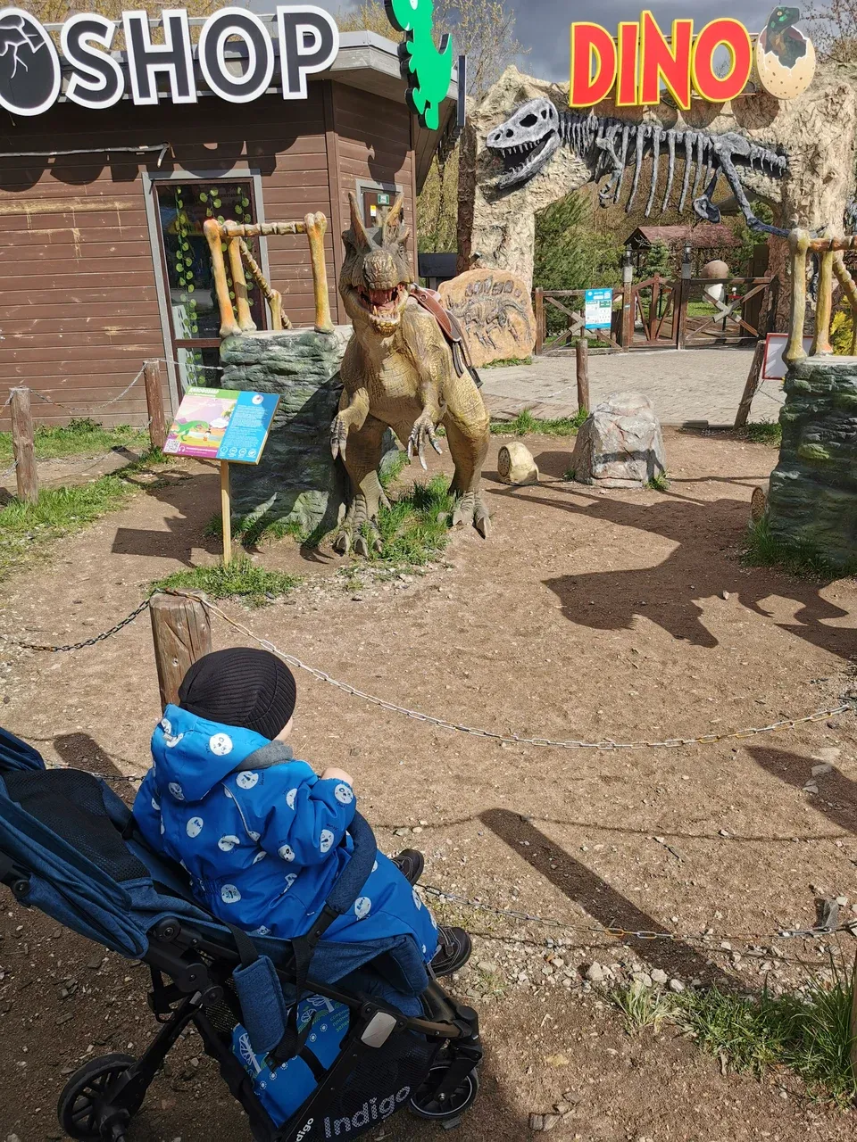 Дино-парковая зона в парке развлечений на Крылатской 18: фигуры динозавров, аттракционы и семейный отдых.