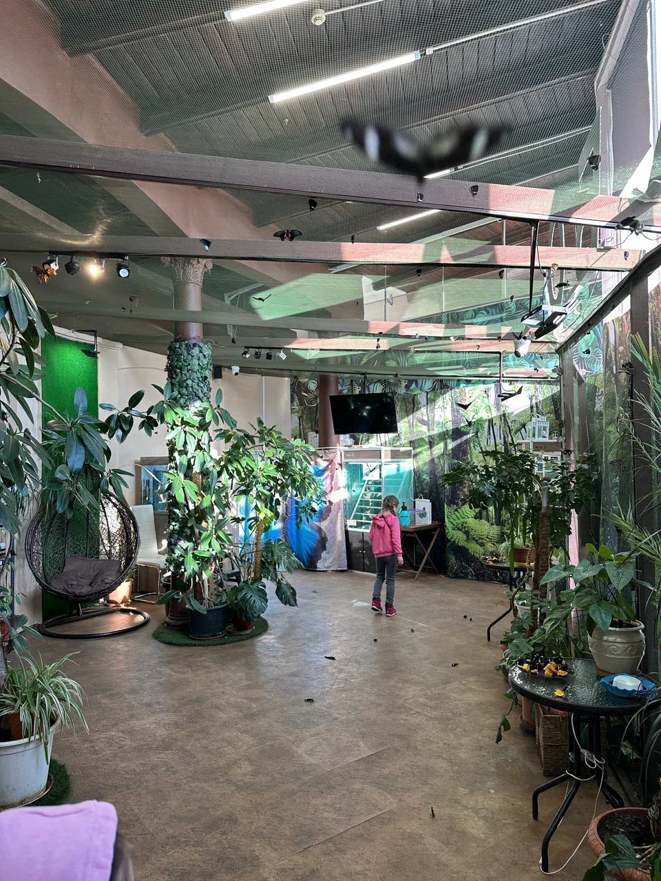 Баттерфляриум — это оранжерея с живыми тропическими бабочками, где можно прогуляться среди сотен насекомых, свободно летающих в зелёном пространстве. Внутри создана атмосфера настоящих тропиков: влажный воздух, обилие растений, мягкий свет под прозрачным куполом и ощущение живой природы вокруг.