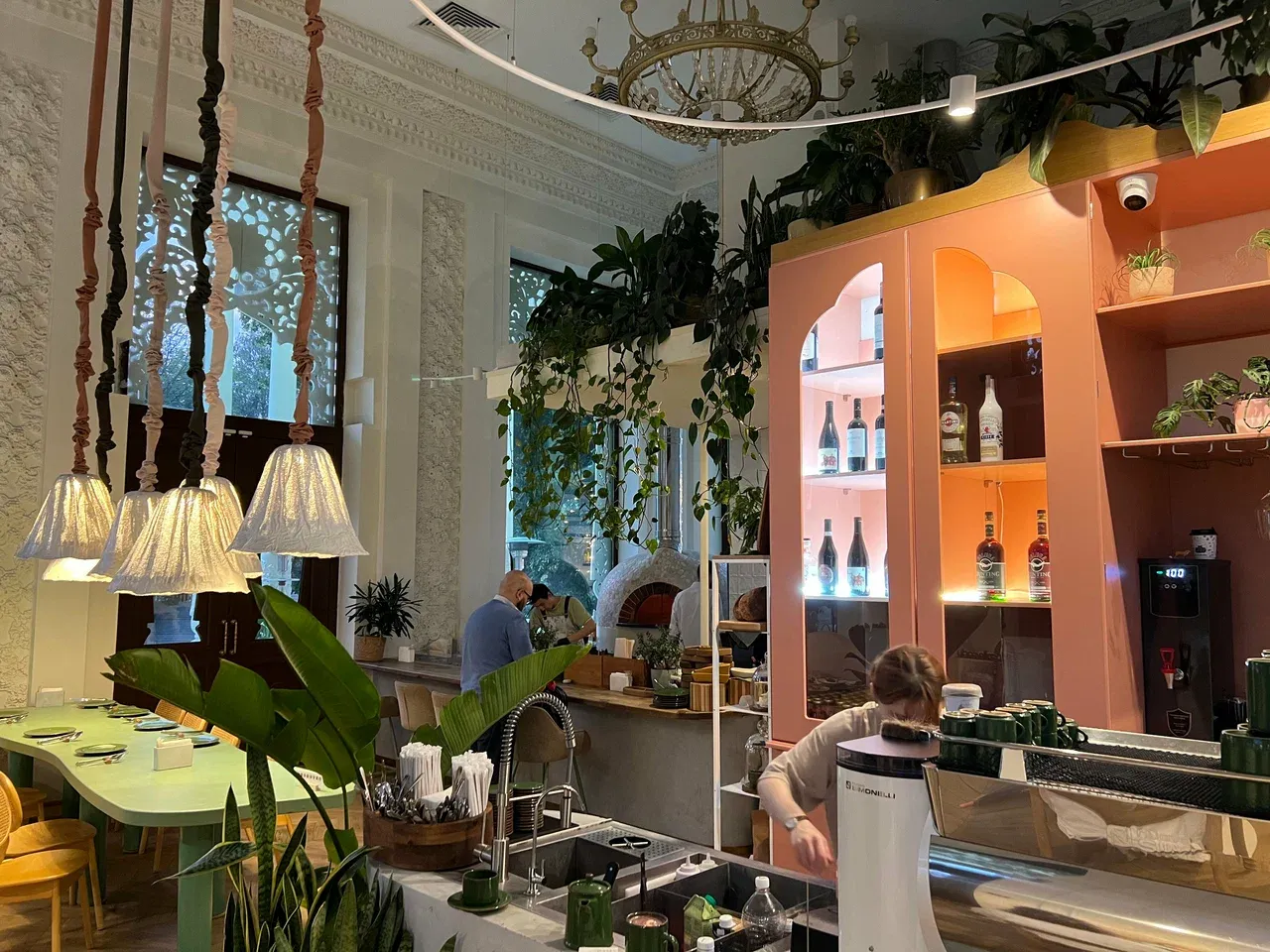 В особняке среди зелёных насаждений на территории ВДНХ открывается ресторан, где средиземноморская кухня встречается с московским городским форматом — просторная веранда, дровяная печь и гриль на открытом огне создают законченную концепцию. Здесь готовят пиццу по рецепту с четырёхдневной ферментацией, пахлаву-чизкейк и тар-тар из тунца, подают кебабы из ягнёнка и коптят утку с баклажанами — всё создано как гастрономическое впечатление, а не просто ужин.
