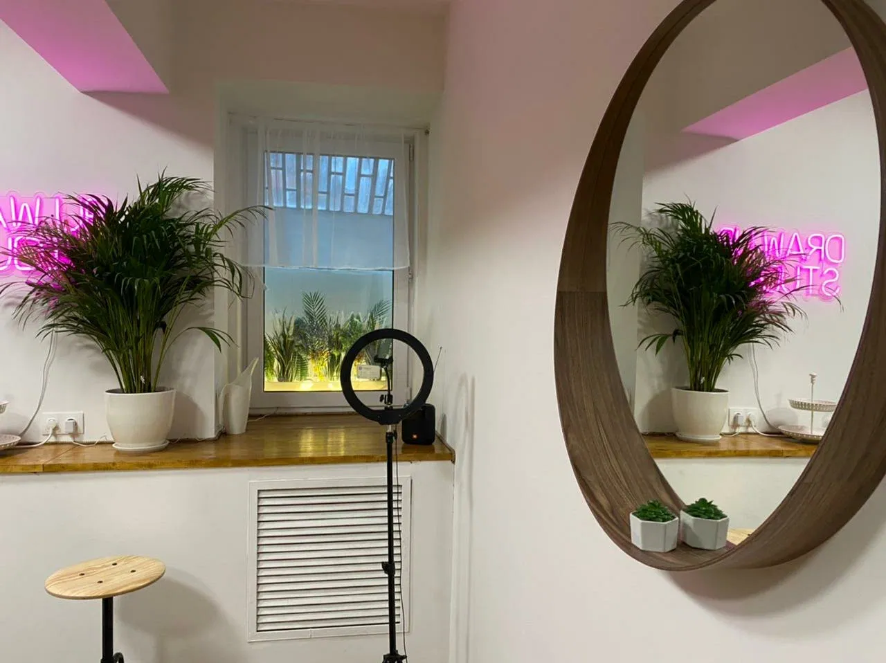 Интерьер студии продуман до мелочей: светлое помещение с большими окнами, отдельные рабочие места, галерея картин учеников и зона отдыха. Всё создаёт ощущение творческой свободы. Здесь легко расслабиться, снять напряжение и почувствовать себя художником, независимо от опыта.