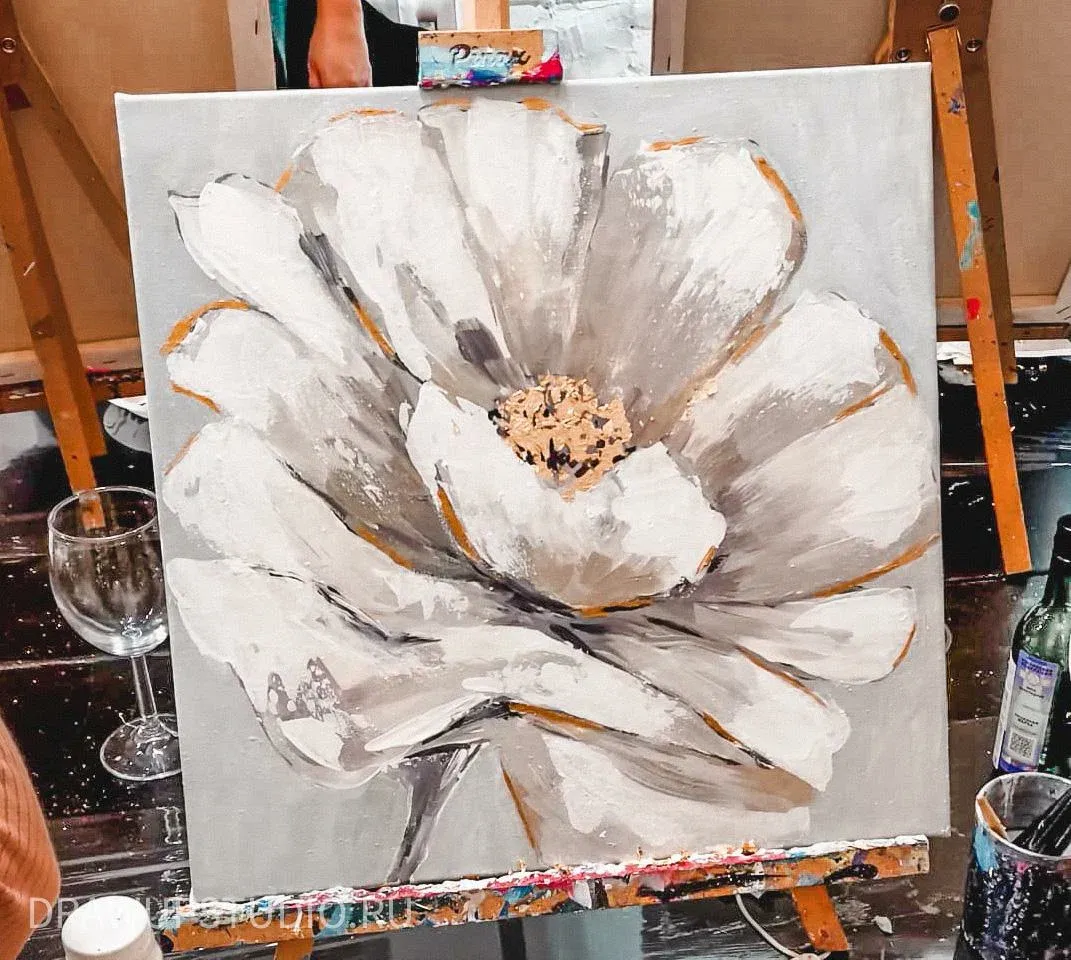 Занятия проходят в небольшой студии с атмосферой уюта и поддержки. Мастера шаг за шагом объясняют процесс создания картины — от первых мазков до финальных деталей. Не нужно иметь художественное образование или навыки: всё получится под руководством преподавателя. Каждый участник выбирает сюжет, который ему ближе — пейзаж, абстракцию, интерьерную композицию или натюрморт.