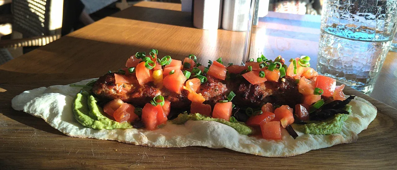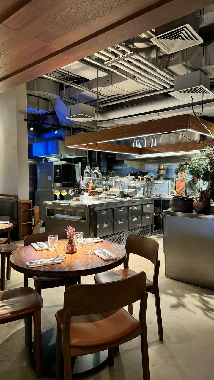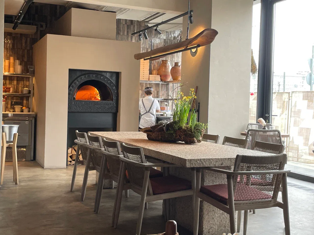 Центр кухни — открытое пространство, где работают дровяная печь, хоспер и гриль-робата. Огонь придаёт каждому ингредиенту особый вкус и аромат, а зрелищность процесса превращает готовку в настоящее шоу. В меню собраны кавказские и ближневосточные рецепты: мясо на шампурах и вертеле, лахмаджун, хинкали, долма, хачапури, лепёшки на мацони, запечённые овощи и ароматные соусы, приготовленные вручную. Каждое блюдо — это баланс насыщенных пряностей, свежих трав и лёгкости подачи.