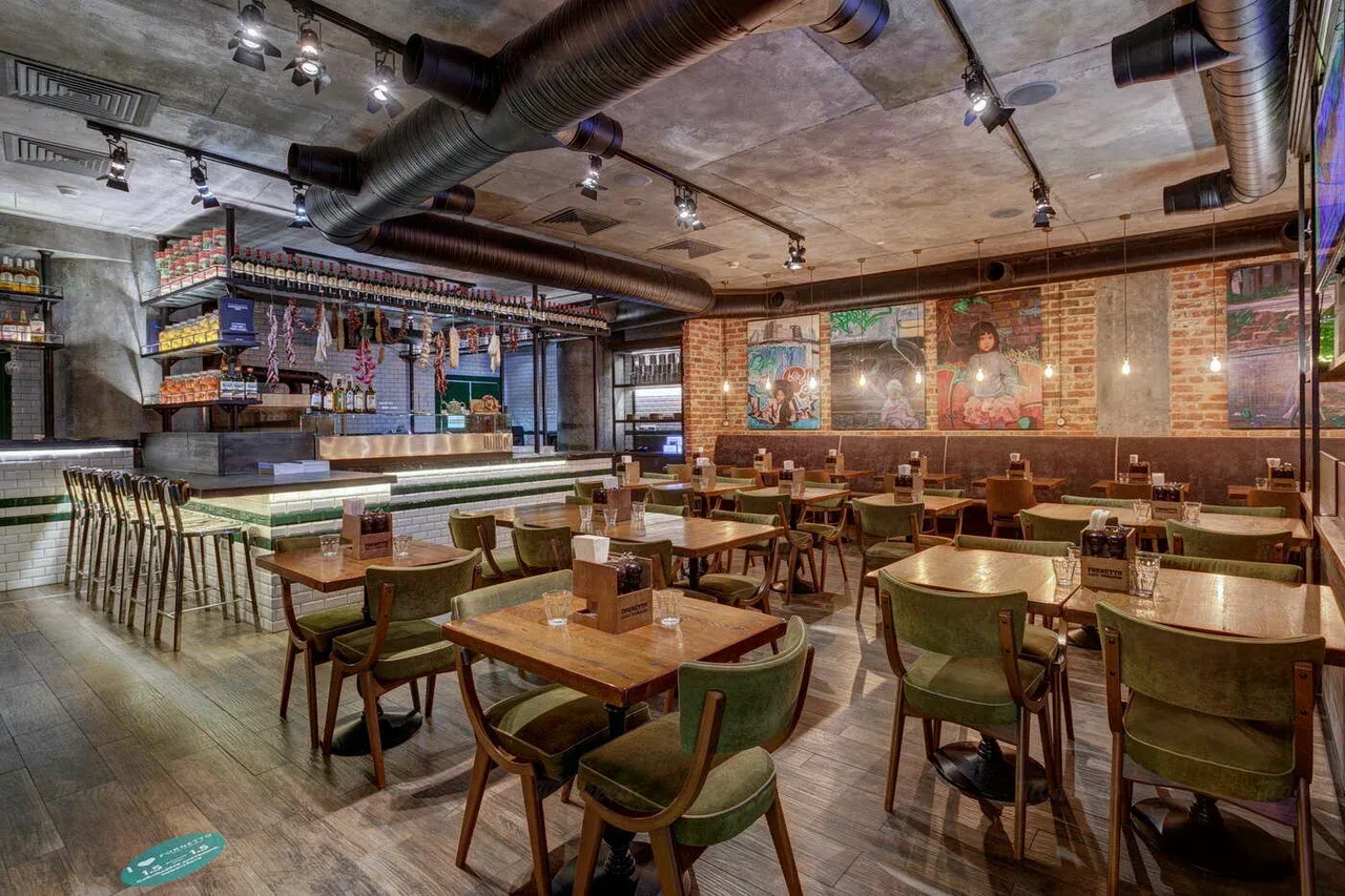 В этом ресторане итальянская кухня встречается с московским стилем жизни. Просторный зал с большими окнами, светлый интерьер в стиле лофт, кирпичные стены и деревянные элементы создают ощущение лёгкости и тепла. Это место, куда приходят за вкусом и спокойным временем — на обед, ужин или встречу с друзьями.