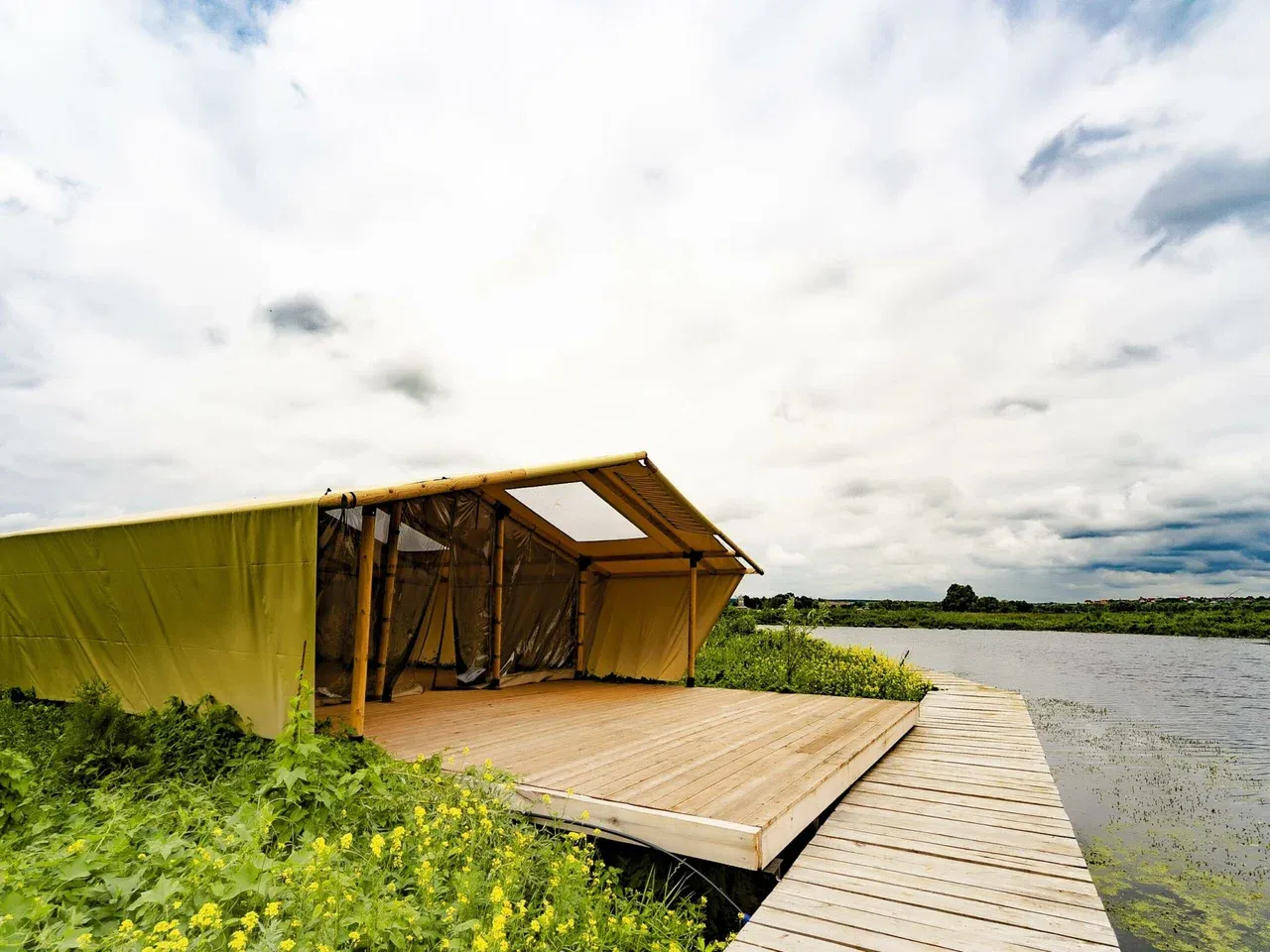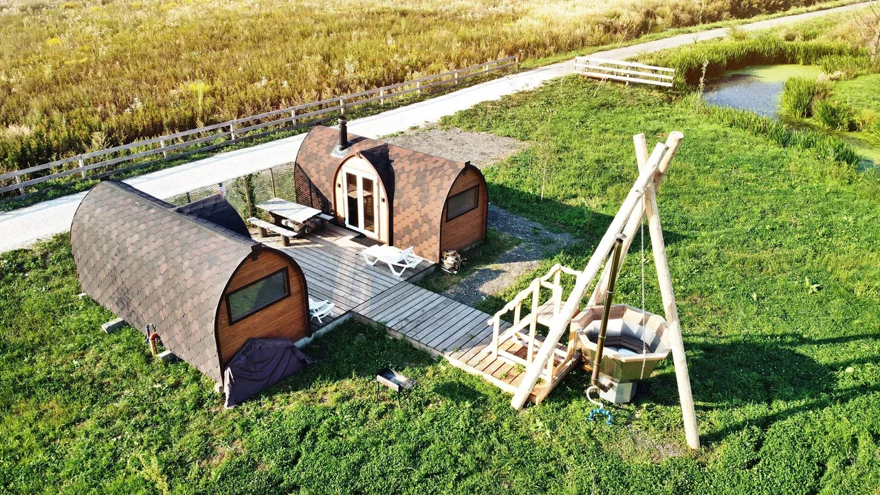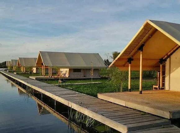 Размещение представлено различными форматами: сафари-тенты вокруг озера с панорамой воды и неба, бунгало с личной баней и подогреваемой купелью, а также кемпинг-зоны для палаток. Внутри каждого варианта — комфорт: мебель, посуда, терраса, зоны отдыха. Всё это позволяет ощутить отдых как на природе и в то же время — с уровнем удобства.