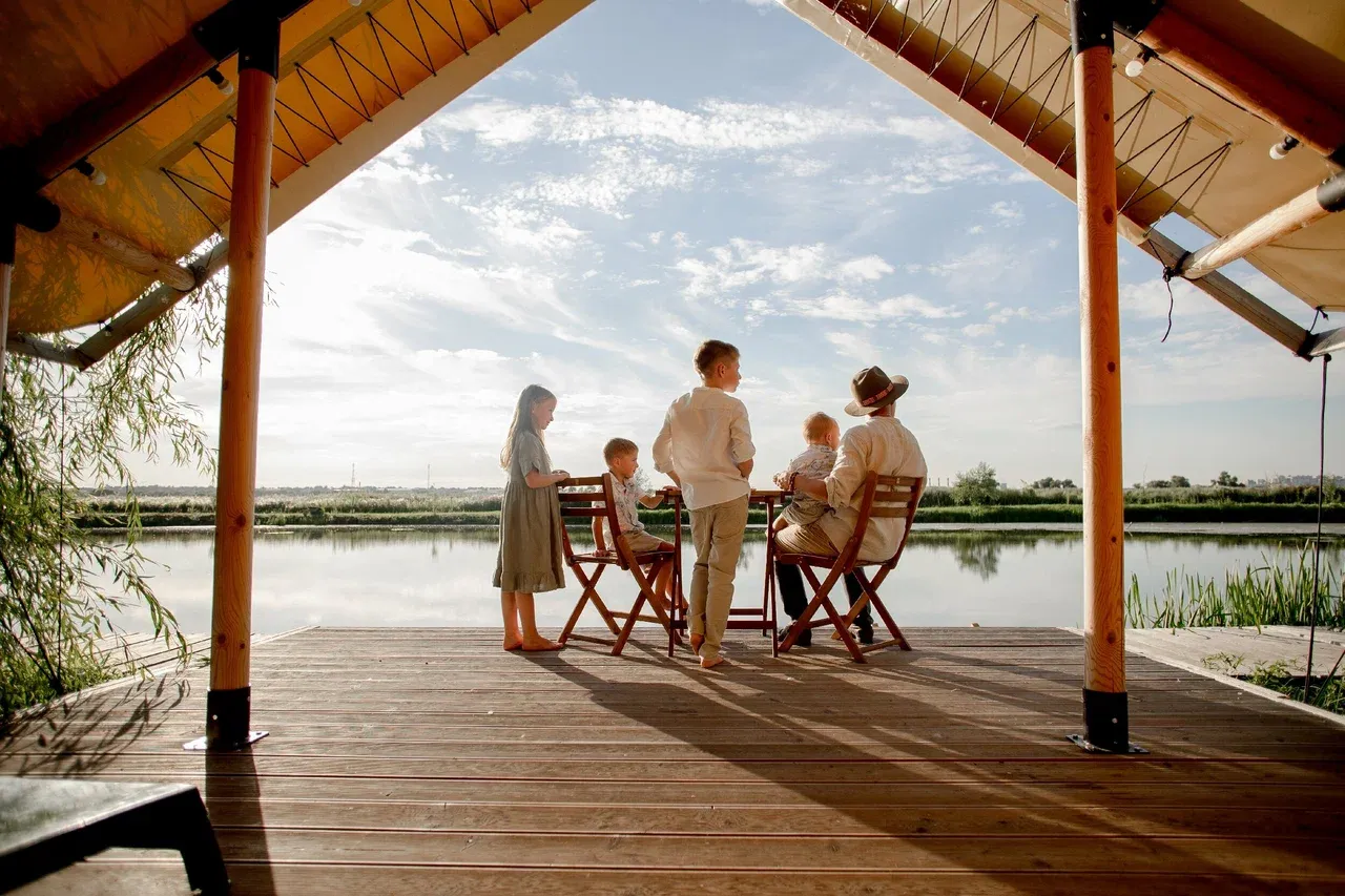 Глэмпинг подходит как для семейного отдыха, так и для встречи с друзьями или романтического уикенда. Здесь можно начать день с прогулки вдоль озера, потом баня и купель, ужин на террасе, а завершить вечер — чаем у костра или разговором у воды. Важен баланс: отдых без суеты, природа без лишних усилий, комфорт без лишнего пафоса.