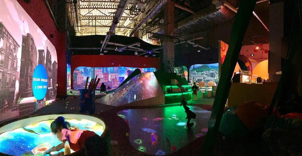 Мультимедийный парк-игровая зона в Москве: интерактивные игры, световые проекции и развлечения для детей и взрослых.