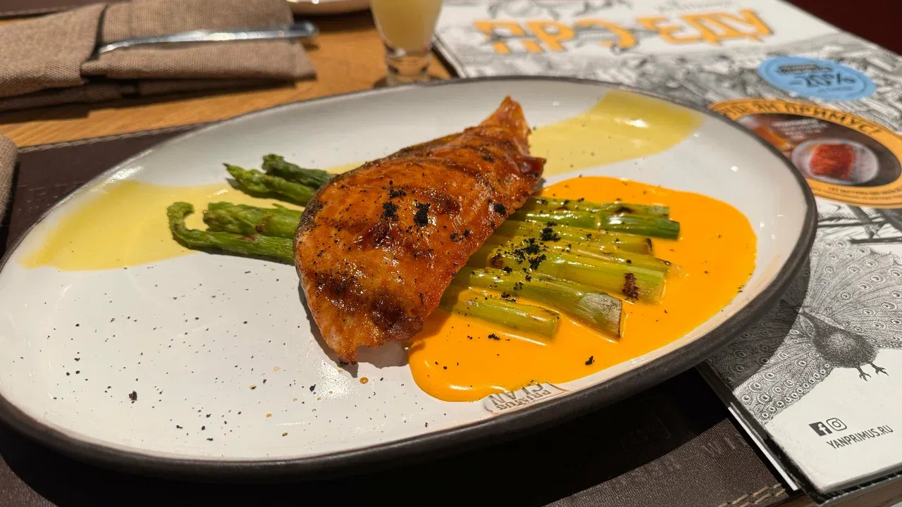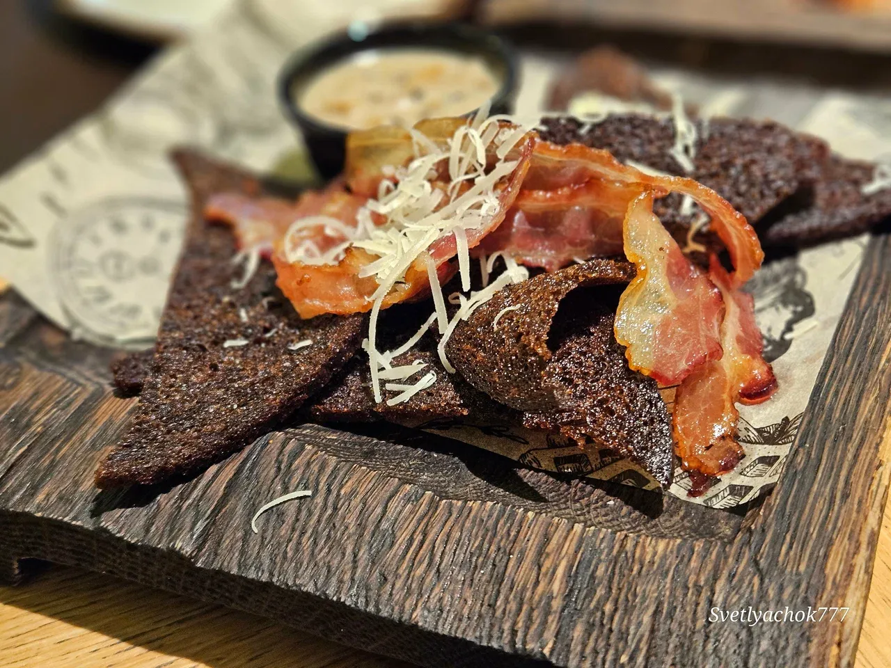 Кухня продумана под формат паба: колбаски, бургеры, стейки, рёбра, салаты, рыба и морепродукты. Порции щедрые, вкус яркий, а подача аккуратная, без излишней вычурности. Меню обновляется по сезонам, добавляя новинки и блюда к праздничным сетам.
