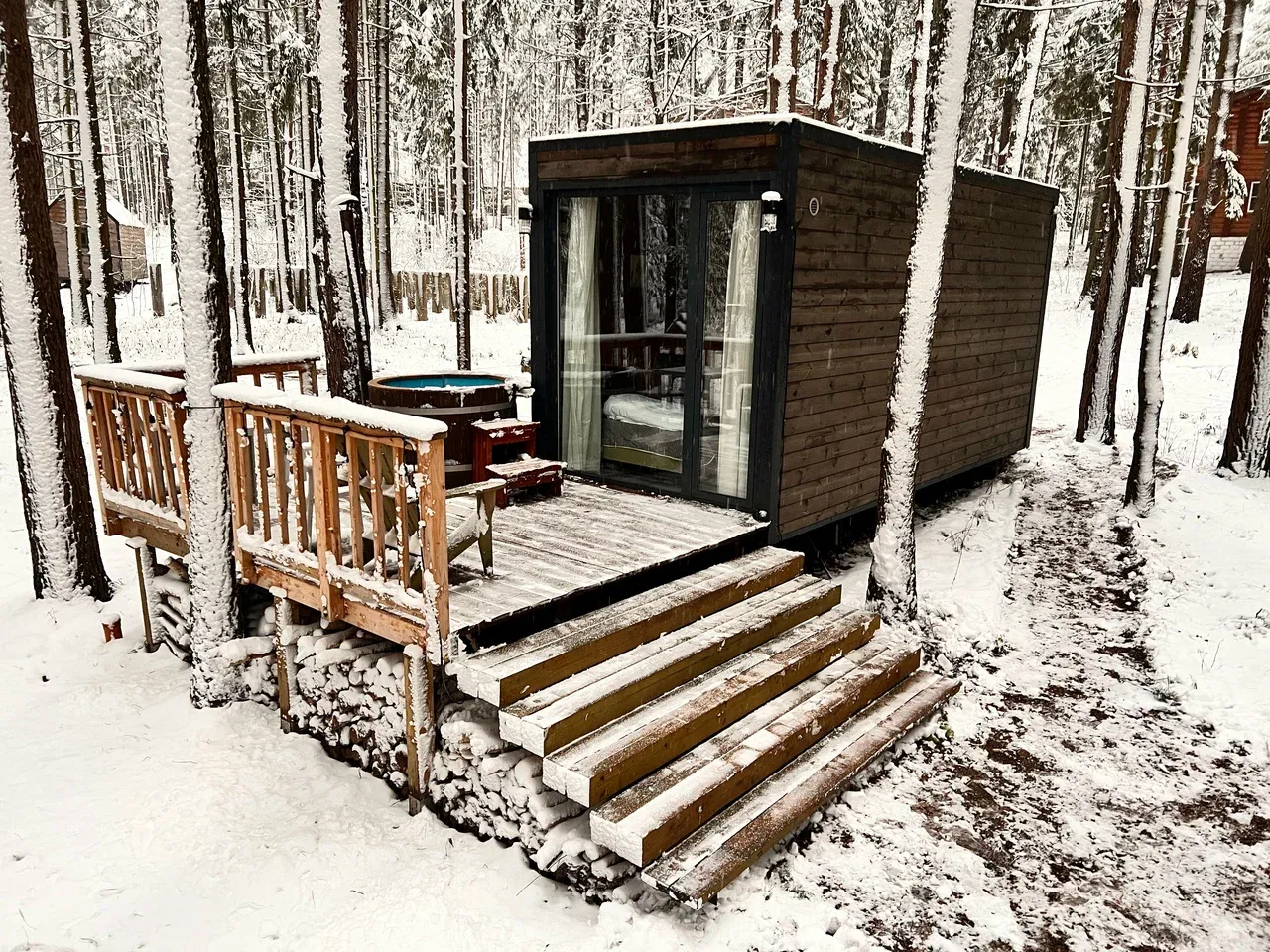 Жильё представлено коттеджами в разных форматах: деревянные дома, домики на воде, семейные и камерные варианты. В каждом предусмотрена кухня, санузел, терраса. Благодаря панорамным окнам и расположению среди сосен, создаётся ощущение, что вы уединились с природой. Домики находятся прямо у берега водоёма — звуки леса и лёгкая водная глажь входят в атмосферу.