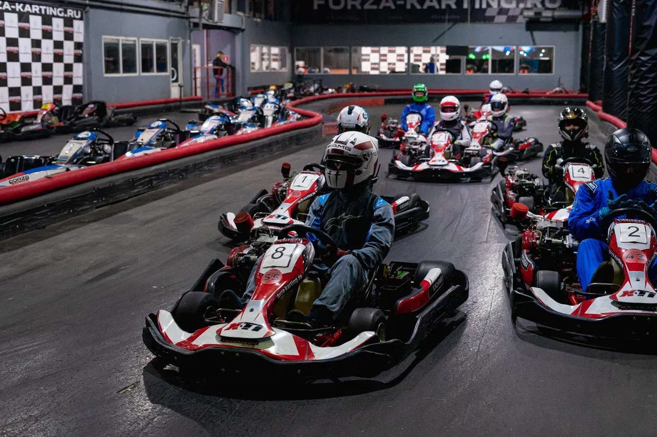 В юго-восточной части Москвы расположен крытый картинг-центр с современной трассой длиной около 550 метров — вход ощущается как начало гоночного приключения: трасса с асфальтовым покрытием, боксы, шлемы, инструктор и карта в руках. После инструктажа участники начинают гонку: повороты, прямые участки, система хронометража и табло — всё напоминает настоящую гоночную среду.