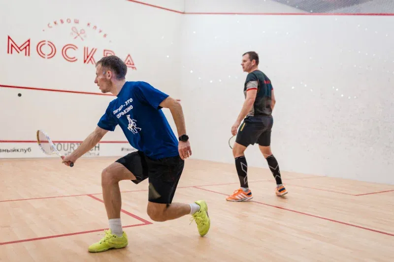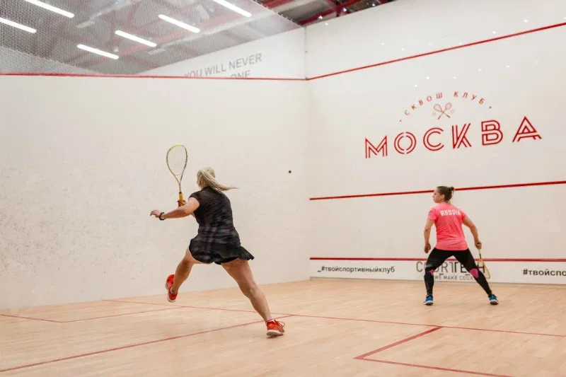 Сквош-клуб в Москве с девятью кортами и удобными зонами для тренировки и отдыха.