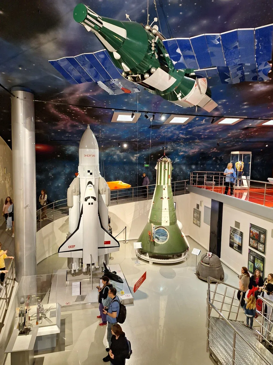 Далее экскурсия ведёт к залам с экспонатами — настоящие космические модули, скафандры, приборы, которыми пользовались космонавты, архивные кадры исторических полётов. Особенно впечатляет полноразмерный модуль орбитальной станции, в котором можно буквально оказаться «на орбите».
