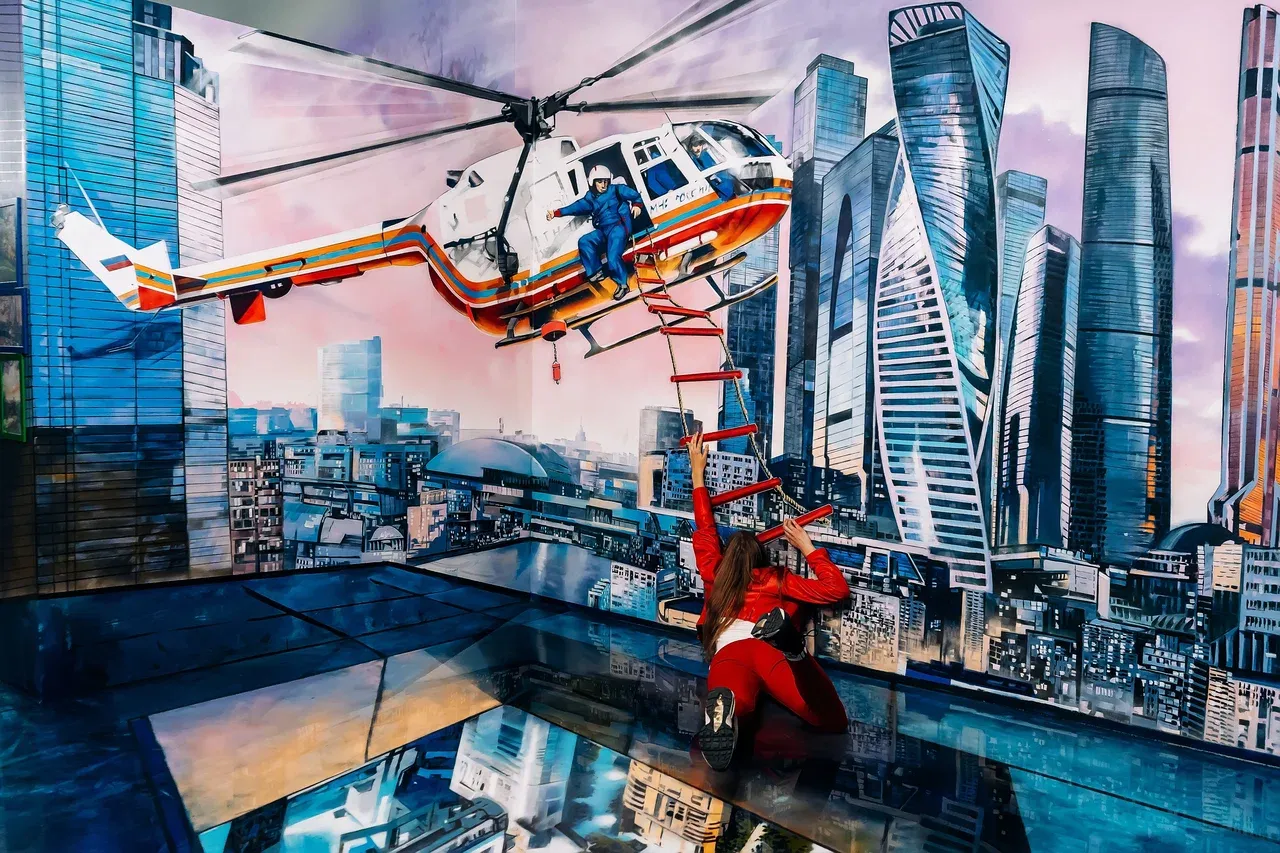 Здесь можно не просто смотреть — каждую зону разрешено трогать, исследовать и фотографировать. В перевёрнутом городе пол становится потолком, а в зеркальном лабиринте теряется чувство направления. 3D-картины создают эффект присутствия: на фото можно оказаться внутри гигантской чашки кофе, балансировать на высоте или убегать от динозавра.
