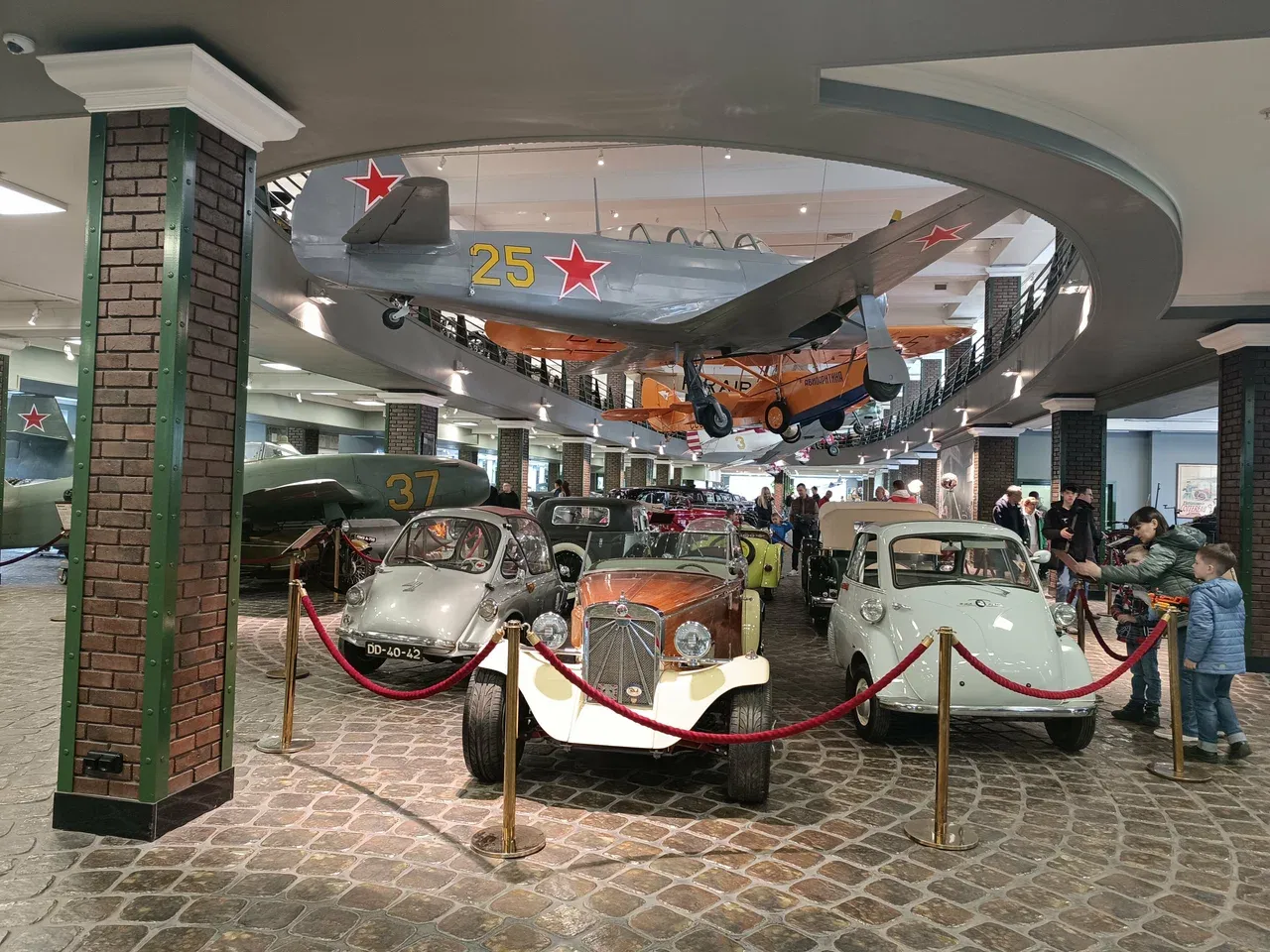 Интерактивная часть включает зоны, где можно заглянуть внутрь машины, увидеть приборные панели, почувствовать масштаб. Для детей и подростков музей превращается в путешествие: можно найти, какая модель была первой, как устроен двигатель, чем отличается техника войны и техники мира. Есть экскурсии с гидом, тематические программы — например, посвящённые авто-гонкам, авиации, танкам.