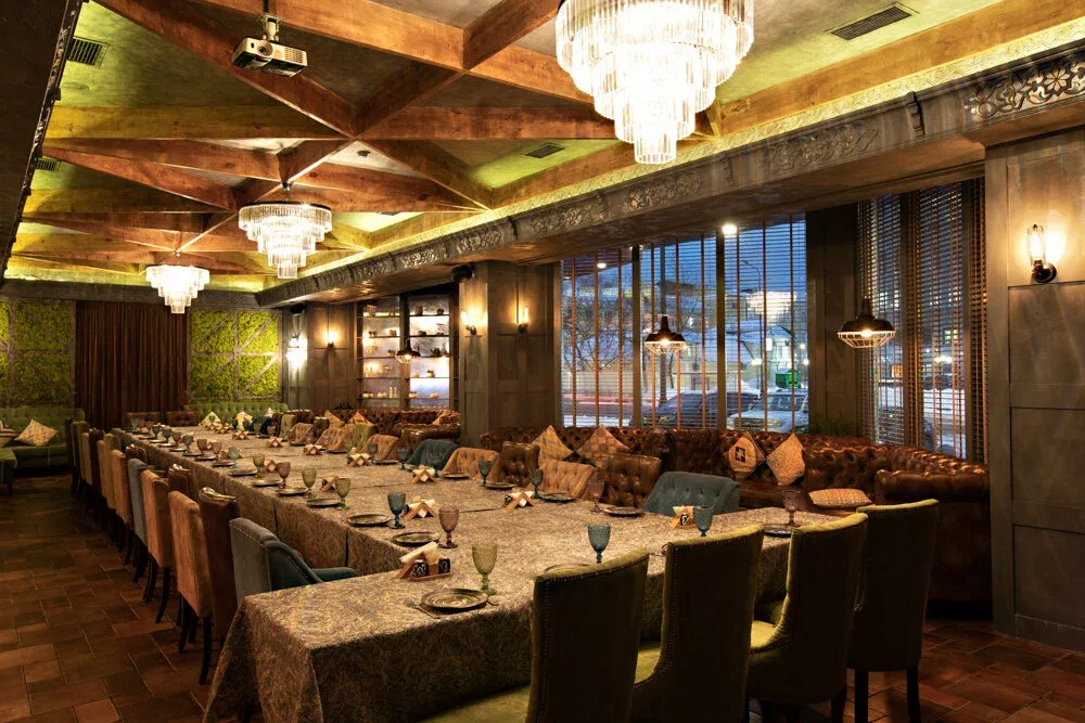По пятницам и субботам ресторан оживает — звучат живые выступления, проходят тематические вечера и караоке-программы. Команда зала помогает организовать любое мероприятие, от юбилея до корпоративного ужина. Пространство подстраивается под формат — от камерного ужина до масштабного торжества.