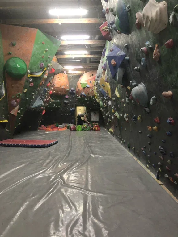 Интерьер зала выдержан в спортивно-функциональном стиле: стены для лазания высотой до примерно 12–13 метров, трассы различной сложности, зона боулдеринга и страховка. В отзывах отмечают, что для новичков есть вводный курс, оборудование можно взять в аренду, раздевалки с душем и сауна обеспечивают комфорт после тренировки.