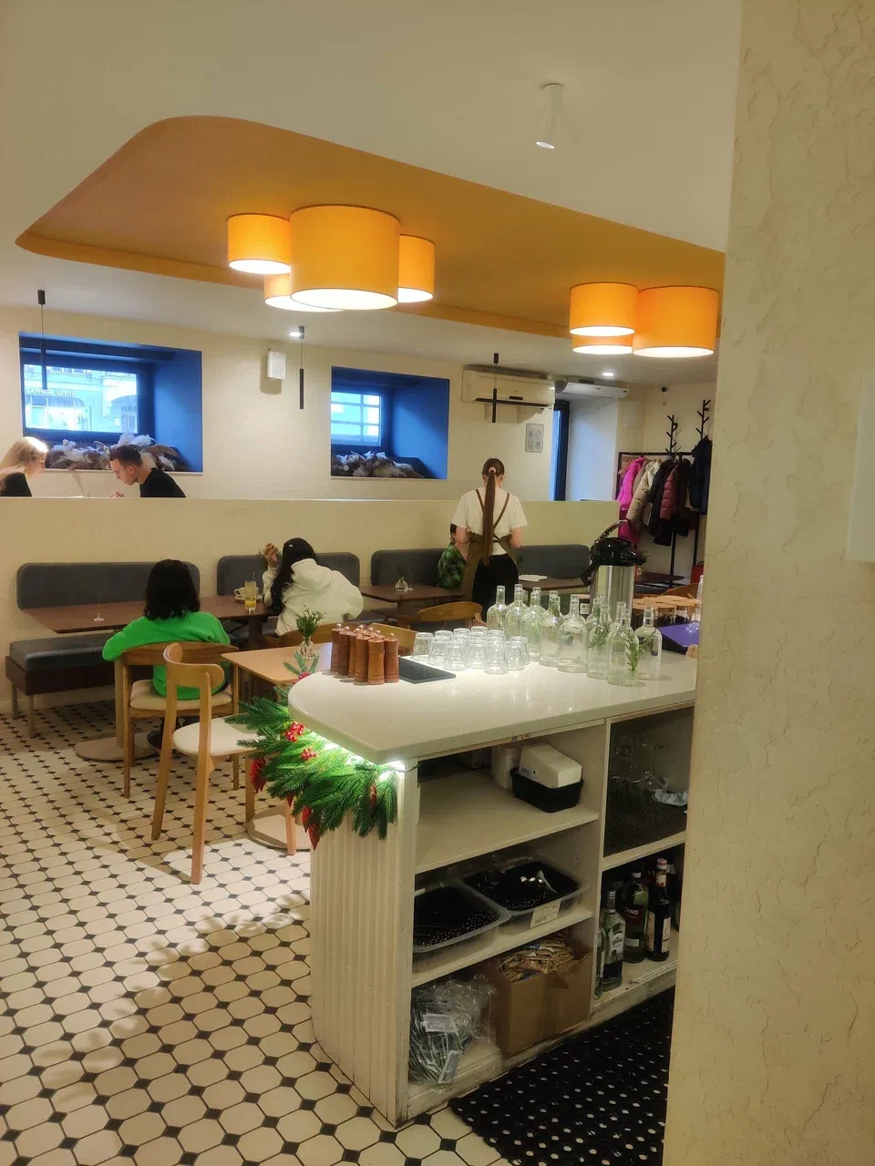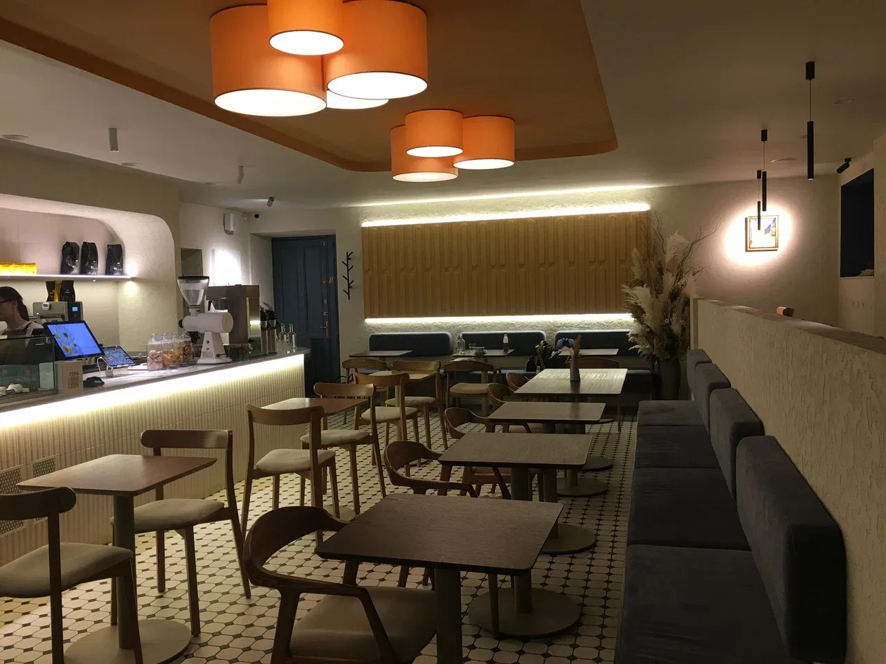 Интерьер выдержан в стиле минимализма с элементами уюта: светлые стены, мягкие диваны, аккуратные деревянные столы и приглушённый свет создают комфортное пространство, подходящее как для одиночного визита, так и для встречи с друзьями. Здесь нет суеты и громкой музыки — всё направлено на спокойный разговор и возможность по-настоящему насладиться моментом.