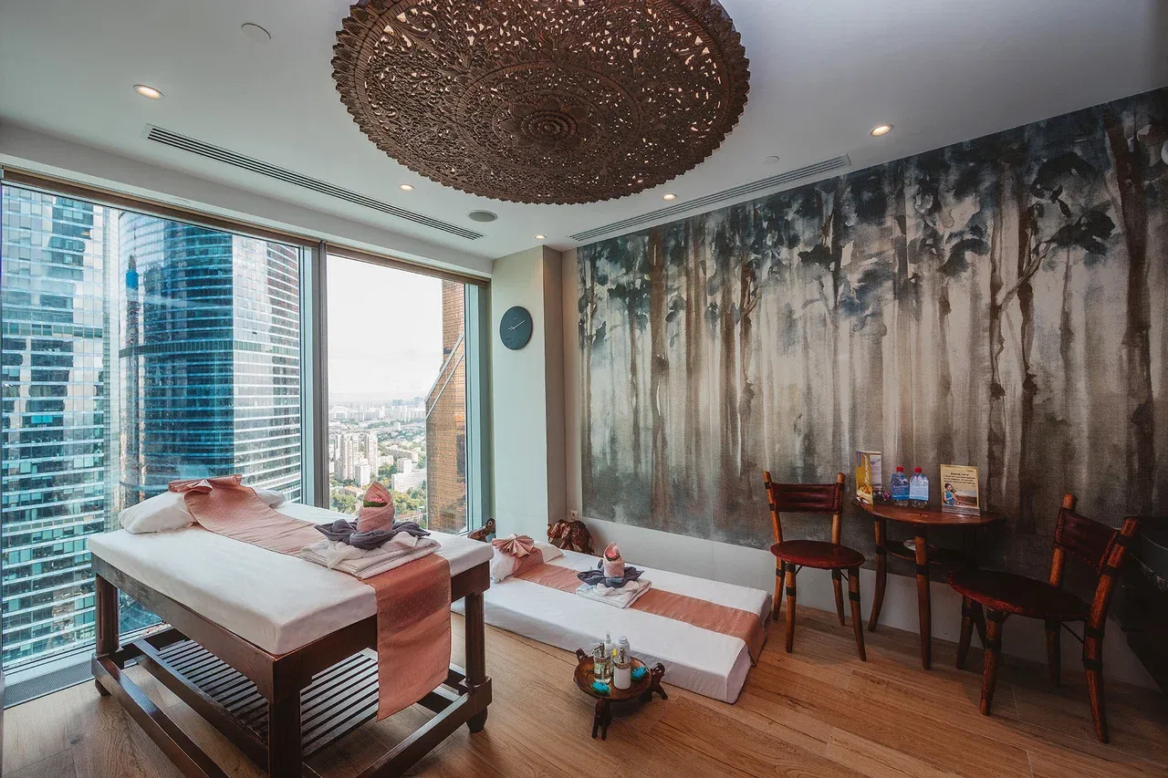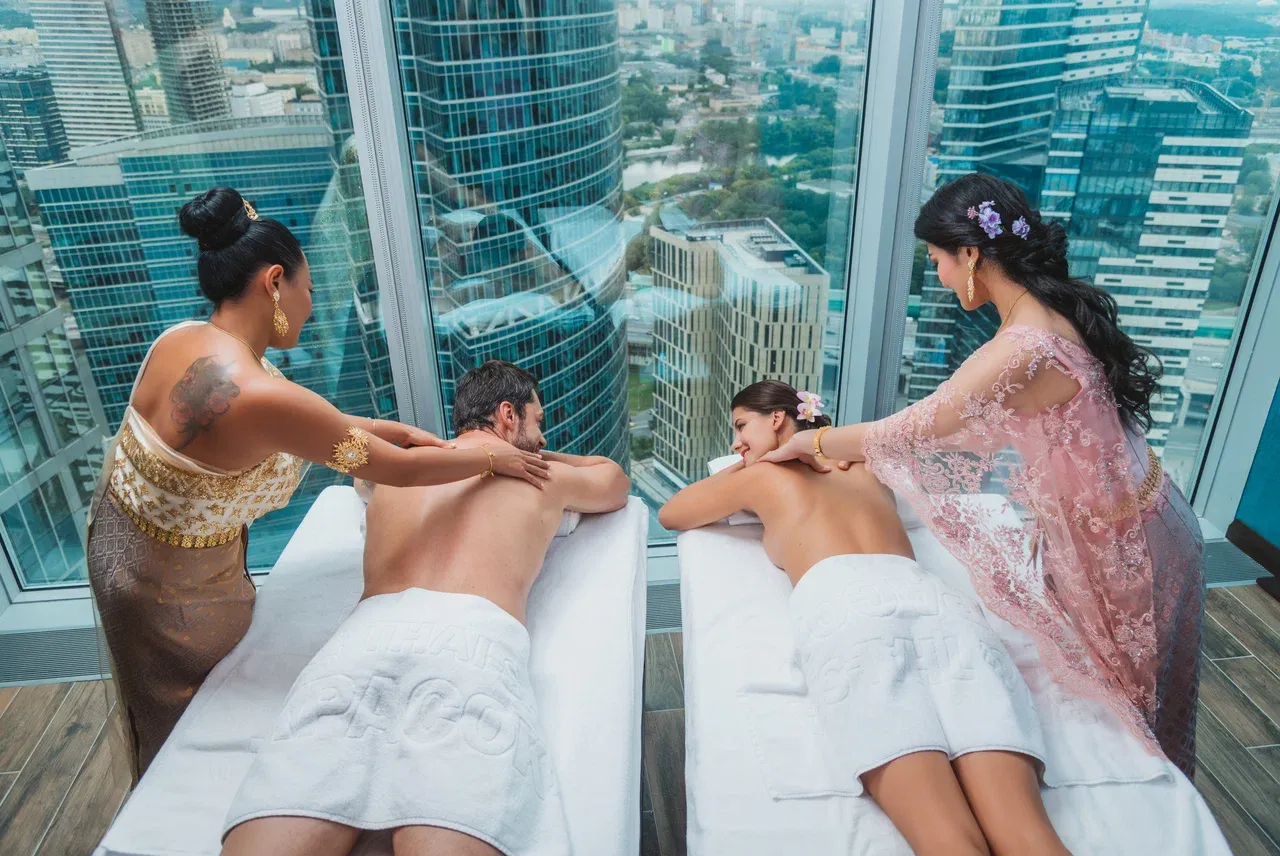 Премиальный спа-салон на 40-м этаже башни в Москва-Сити с тайскими и балийскими массажами, хаммамом, панорамными видами и VIP-зонами отдыха.