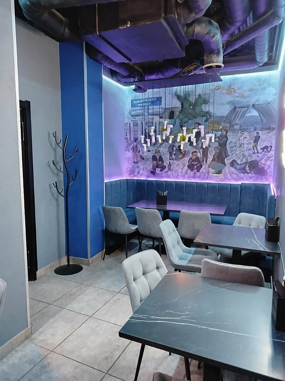 Интерьер выполнен в современном стиле: приглушённый свет, дерево и металл, открытая барная стойка и мягкие диваны. Музыкальное сопровождение выстроено по ритму дня — от спокойных треков в начале вечера до энергичных диджей-сетов к ночи. Всё пространство живёт в такт городу: здесь можно расслабиться, пообщаться и просто насладиться моментом.