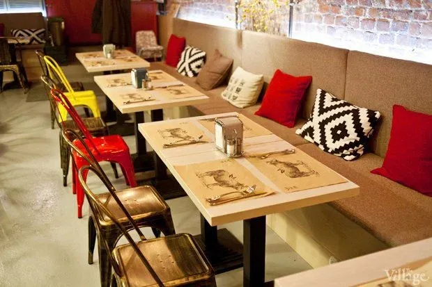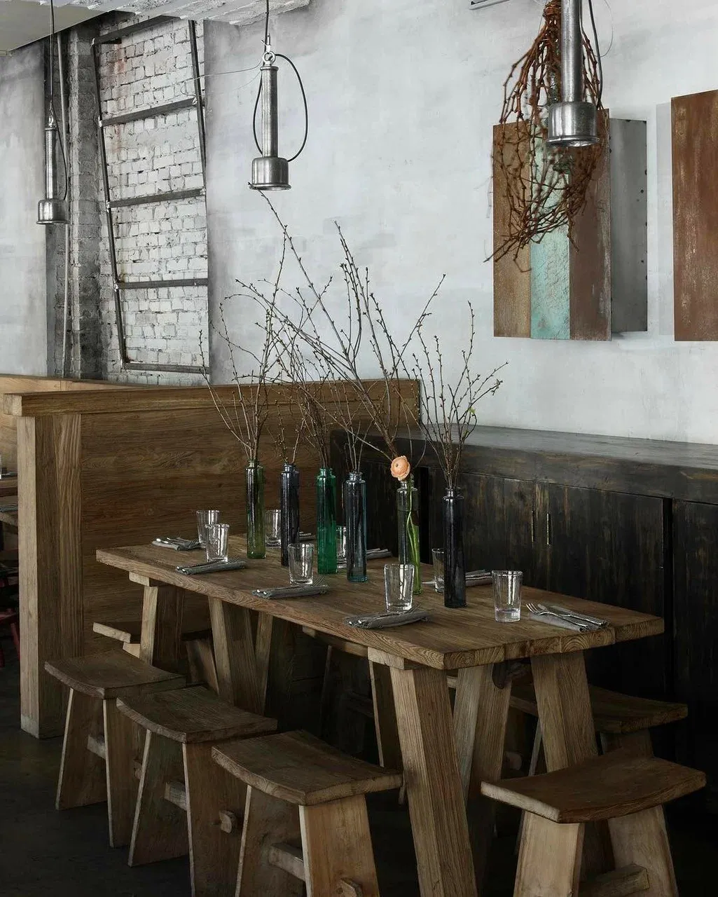 Интерьер сочетает индустриальные элементы и уютное освещение. Центральное место занимают массивные печи и гриль, создающие ощущение живого пространства, где готовка становится частью шоу. Металл, дерево, кирпич и открытые трубы формируют узнаваемый стиль заведения — немного дерзкий, немного арт-хаусный, но при этом комфортный. Это не просто ресторан, а место, куда приходят за эмоцией вкуса и настоящим опытом еды.