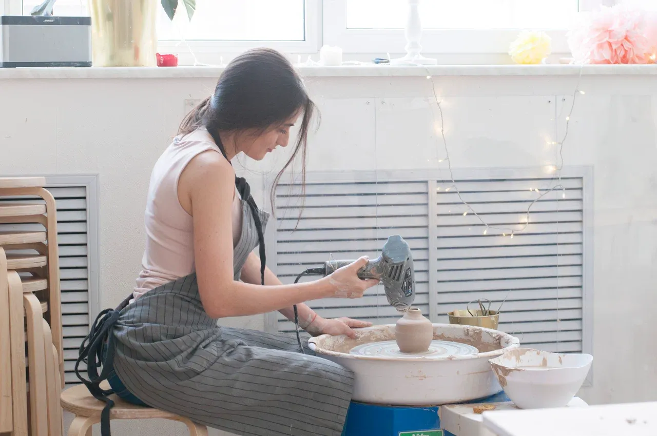 Volna Ceramics — творческая мастерская керамики в Москве, где каждый сеанс позволяет погрузиться в ощущение работы с материалом и создать самостоятельно предмет посуды или декора. Здесь можно выбрать формат: ручная лепка или работа на гончарном круге, курс или одноразовое занятие, даже свидание за глиной. Занятия проходят в удобное время, а все материалы и обжиги входят в стоимость.