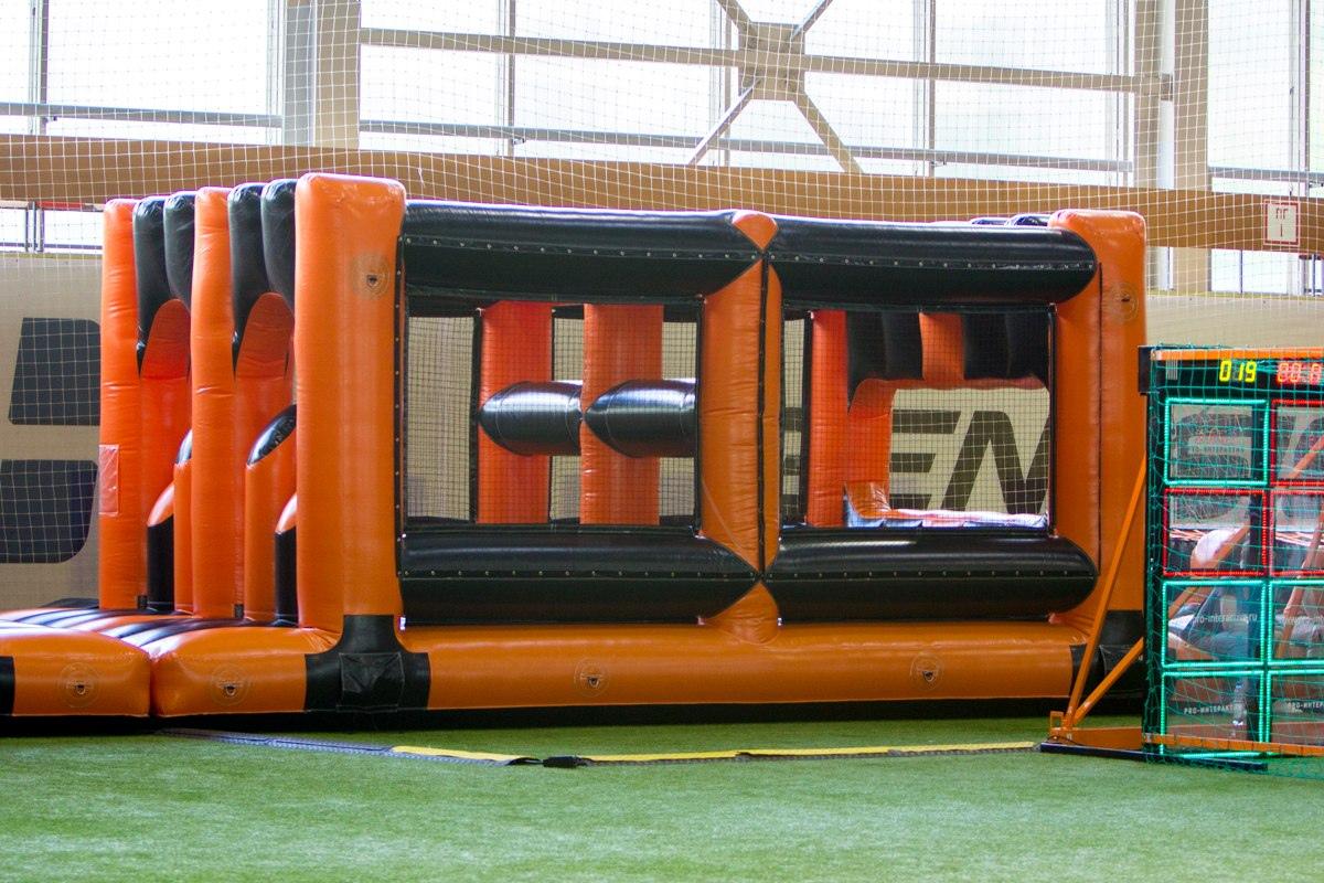 Основная зона представляет собой серию препятствий, рассчитанных на развитие ловкости, скорости и реакции. Можно ползти, карабкаться, перепрыгивать и балансировать, преодолевая этап за этапом. Трасса адаптируется под формат события: от лёгких командных эстафет до интенсивных забегов. Одновременно участвовать могут до 50 человек, что делает площадку удобной для больших групп и праздников.