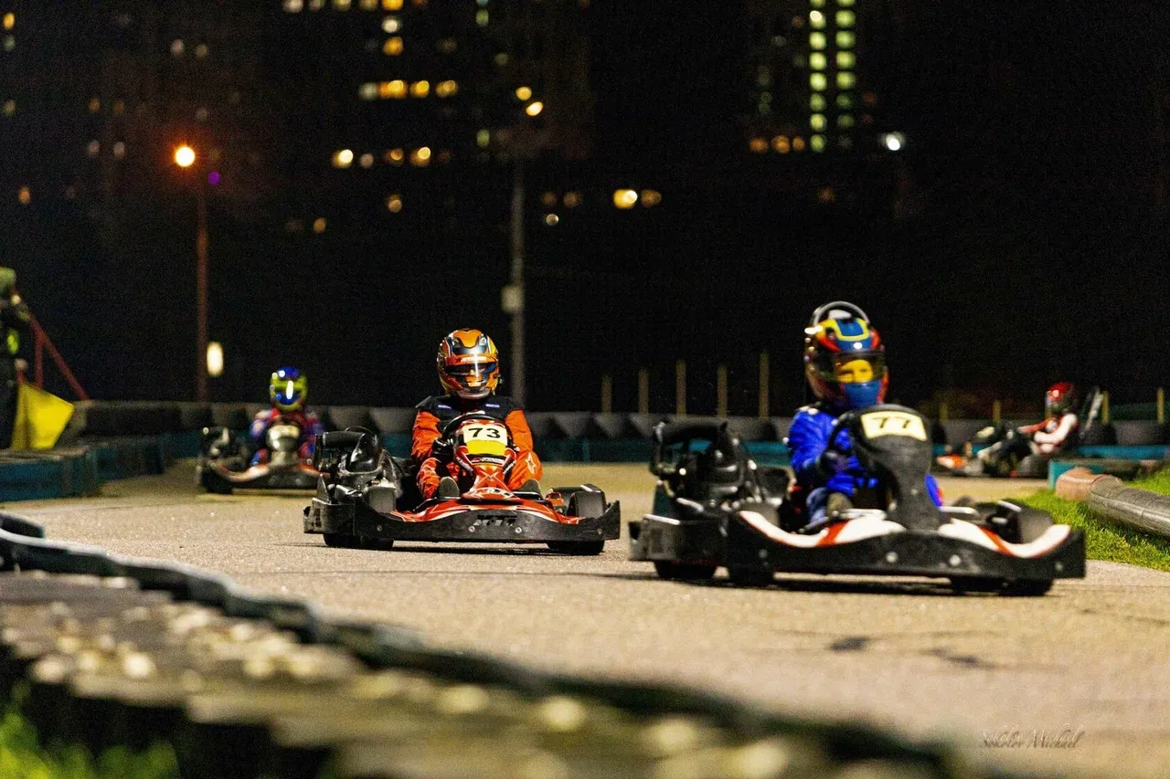 Подходят визиты разного формата: семейный день с детьми-гонщиками, подростковая компания, корпоратив или дружеский турнир. Центр работает ежедневно с 11:00 до 23:00, что делает возможным визит как в выходной день, так и вечером после работы. Несмотря на открытый трек, система устроена так, чтобы заезд был комфортен даже при прохладной погоде.