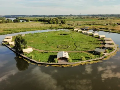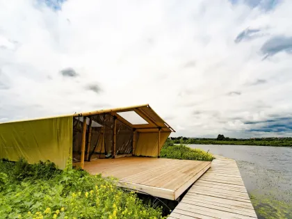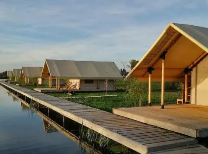 Глэмпинг недалеко от Москвы с сафари-тентами, бунгало с баней, купелью, озером, мангалом и природой рядом.
