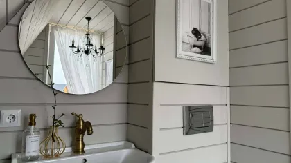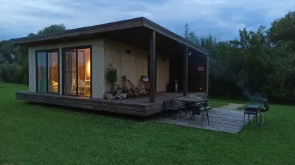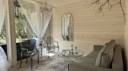 Эко-ферма в Подмосковье с домиками скандинавского стиля, баней-бочкой, купелью, бассейном и барбекю-зоной среди леса и воды.