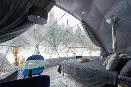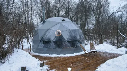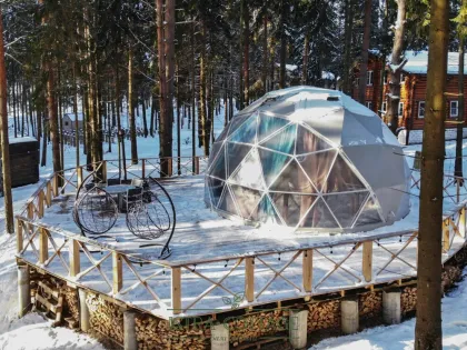 Глэмпинг в Подмосковье с купольными домиками-сферами, баней, купелями, лесом и тишиной всего в 100 км от Москвы.