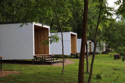 Глэмпинг-парк под Москвой на берегу Истринского водохранилища с панорамными домиками, банями и природой рядом.