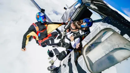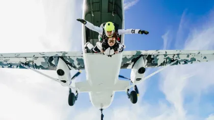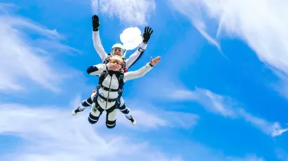 Организация тандемных прыжков с парашютом над Сочи: подъём на 4 000 м, свободное падение, сопровождение инструктора, трансфер и видео.