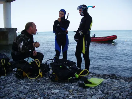 Глубина — школа дайвинга в Сочи: курсы с сертификацией, ночные и морские погружения, тренировки в бассейне, прокат снаряжения и сопровождение на катере.