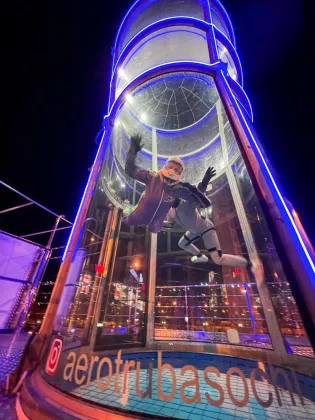 Аэротруба Сочи — аттракцион в ТРЦ «МореМолл»: полёты в аэродинамической трубе, подходящие и для детей, и для взрослых, инструктаж, абонементы, чувства полёта без парашюта.