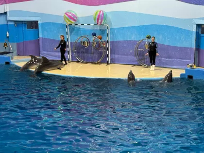 Адлерский дельфинарий — шоу с дельфинами, белухами и морскими котиками. Яркие выступления, фотосессии, катание на лодочке и кафе на территории. Отличное место для семейного отдыха.
