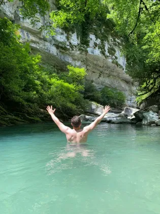 Каньон Белые Скалы — живописный природный каньон в Навалишинском ущелье, с белыми известняковыми скалами, прозрачной рекой Хоста, лесными тропами и умеренной маршрутом длиной около двух километров.