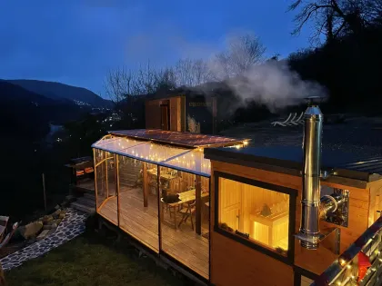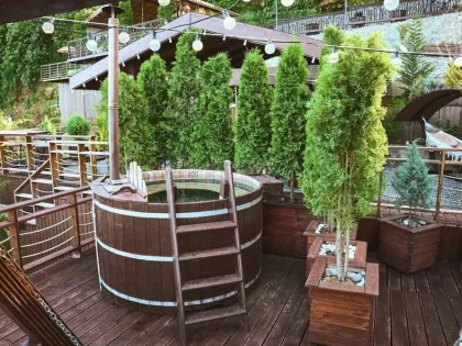 Глэмпинг и гостевой дом в Адлере: деревянные дома с удобствами, бассейн, фруктовый сад, мангалы, шаг до моря и атмосфера расслабленного отдыха.