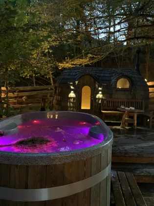 Лесной глэмпинг в Воронцовке: барнхаусы и тент-хаусы с саунами, джакузи, ресторан, баня, контактный зоопарк и спа услуги.