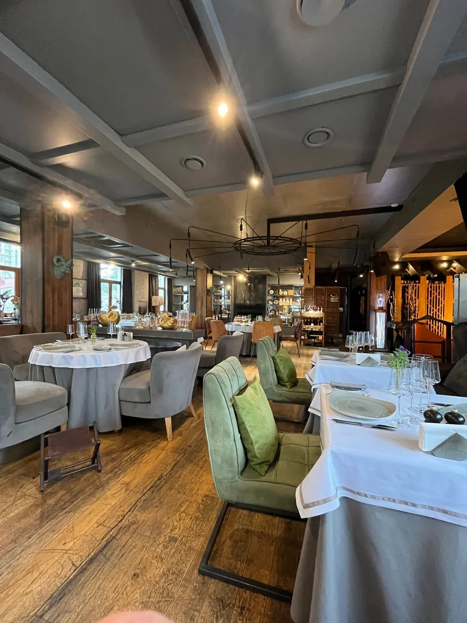 Ресторан имеет два этажа с разной атмосферой. Первый этаж — более доступный, гастро-бистро стиль: здесь можно зайти просто отдохнуть, заказать лёгкий обед, десерт или бокал вина. Второй этаж называется «Новая глава» — формат fine dining, более камерный, подходит для особых случаев: уютных ужинов, важных событий, когда хочется чего-то изысканного и атмосферного.